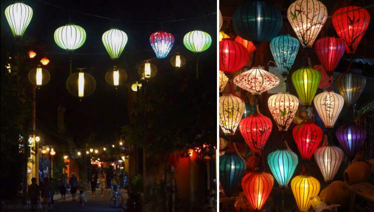 We bought an old town ticket, with which you can enter 5 (if I remember correctly) places of your choice in the old center. We especially liked the Fujian Assembly Hall (left picture) and the Cantonese Assembly Hall (middle picture). In the afternoon we biked over to An Bang Beach for a swim. After sunset, we visited the night market and walked around in the old center, admiring all the lanterns once again.