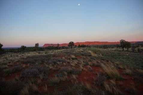 For this morning, we planned to do the ‘Valley of the Winds’ walk at Kata Tjuta. We left just after sunrise and drove to Kata Tjuta, which is over 50 kilometers away from the Ayers Rock Resort. After a quick stop at the sunrise viewing area, we started the walk. It was pretty difficult, with lots of loose rocks. Also, after the beautiful walk at Kings Canyon, we were a bit disappointed by the landscape. It was not that interesting, to be honest. So after maybe 30 minutes of walking, we decided not to continue and returned to the camper to start our drive back to Alice Springs.